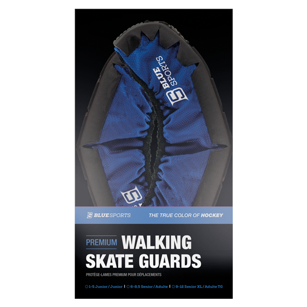 Profesionální chrániče nožů bruslí od kanadské firmy Blue Sports určené pro chůzi v bruslích mimo ledovou plochu. Dvě vrstvy speciální tkaniny spolu s gumovou spodní část tvoří dokonalý celek. Uvnitř chrániče je drážka pro vsunutí nože brusle. Na spodní straně chrániče je masivní gumový pás bránící uklouznutí při chůzi. Chránič je určený pro všechny modely bruslí. Délka chrániče se přizpůsobí délce brusle pomocí gumy, která se obepne po obvodu plastového holderu nože.